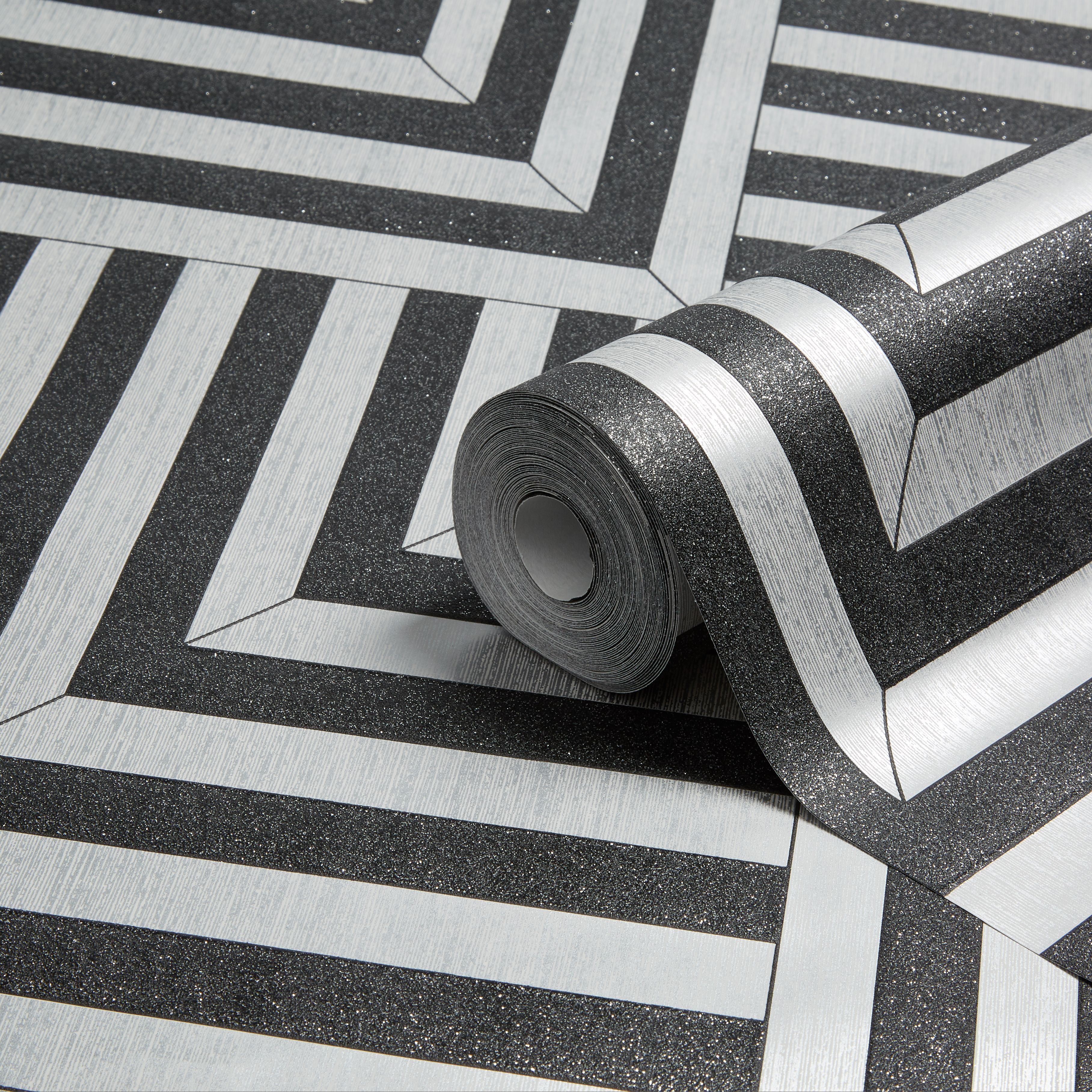 Colours Maze Black Amp Silver Geometric Glitter Effect