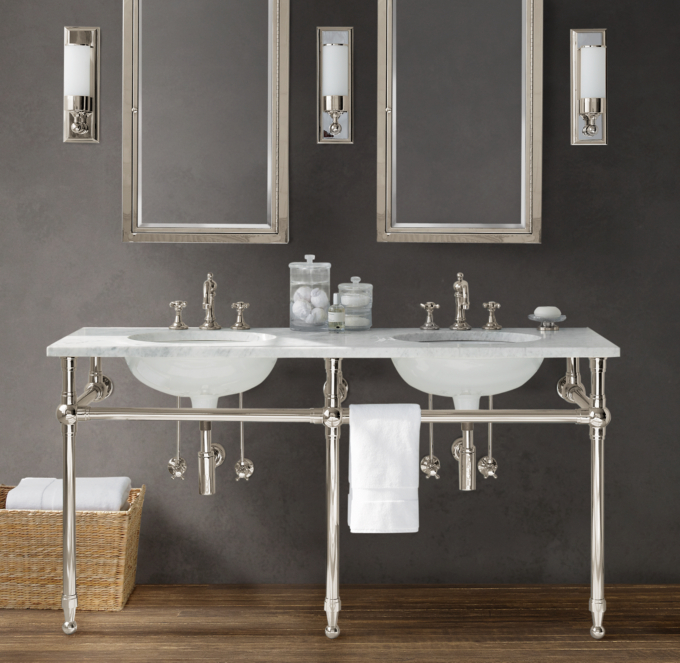 "Odon Double Vanity, 20th C Factory Filament Metal Double Sconce, 1930s Laboratory Stainless Steel Double Vanity Bathroom , Bathroom: Timeless Collection Restoration Hardware Vanity , Bathroom: Exciting 60 Inch Vanity Double Sink For Modern , Bathroom: Timeless Collection Restoration Hardware Vanity , Restoration Hardware Hutton Washstand copycatchic, Bathroom: Exciting 60 Inch Vanity Double Sink For Modern , Gramercy Double Metal Washstand, Bathroom: Exciting 60 Inch Vanity Double Sink For Modern , Weathered Wood Bathroom Vanities for a Cottage Style , White Walnut Bathroom Vanity, Master bath remodel Cre8tive Designs Inc , A Spanish Colonial Revival Home Transformed LA Edition , Curtain: Best Material Of Bed Bath And Beyond Curtain Rods , Girls' Bathroom Sources Chris Loves Julia, Kitchen: Cozy Kitchen Sinks Stainless Steel For "